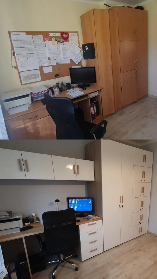 i umeblowano pokój socjalny pracowników, wywiercono otwory w toaletach w celu podłączenia wymaganej wentylacji, wymieniono listwy przypodłogowe, lampy, włączniki